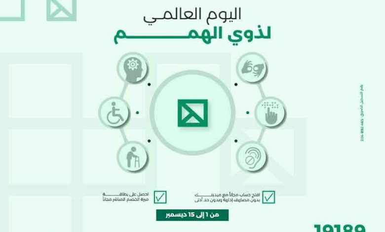 *ميدبنك يتيح فتح حسابات بدون رسوم ويقدم بطاقة ميزة مجانية لذوي الهمم*