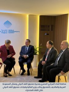 وعلى هامش المنتدي عقد المحافظ، العديد من اللقاءات المهمة، حيث التقى كريستالينا جورجيفا المديرة العامة لصندوق النقد الدولي، لبحث أوجه التعاون المشترك بين الجانبين وتطورات المؤشرات الكلية للاقتصاد المصري، في إطار برنامج الإصلاح الاقتصادي الذي تنفذه مصر بالتعاون مع صندوق النقد الدولي، وذلك بحضور الدكتور محمد معيط المدير التنفيذي وعضو مجلس المديرين التنفيذين وممثل المجموعة العربية والمالديف بصندوق النقد الدولي، و ياسر صبحي نائب وزير المالية، الدكتور جهاد أزعور مدير إدارة الشرق الأوسط وآسيا الوسطى في صندوق النقد الدولي وعدد من قيادات الصندوق.