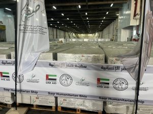 بدعم من وكالة الإمارات للمساعدات الدولية… وصول سفينة “صقر” إلى ميناء العريش محملة بـ4 آلاف طن من المساعدات لغزة