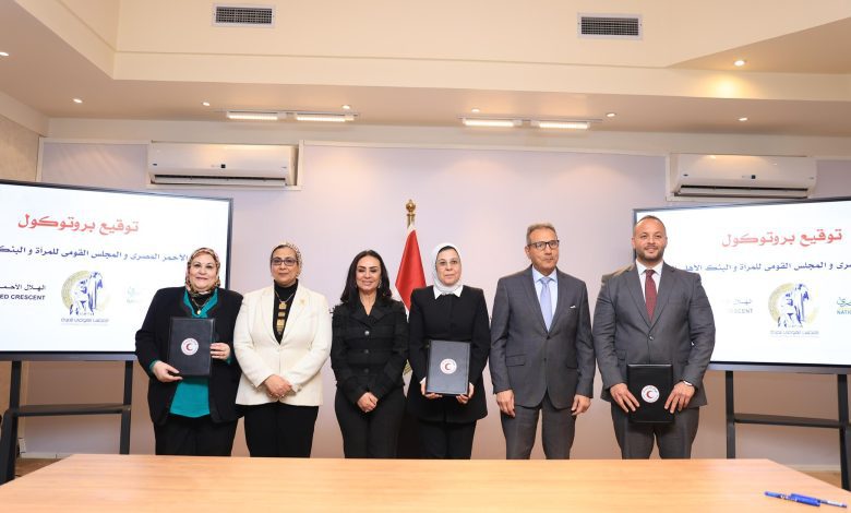 البنك الأهلي المصري يوقع بروتوكول تعاون مع الهلال الأحمر المصري والمجلس القومي للمرأة