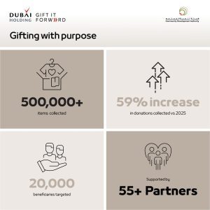 المبادرة تقوم على جمع السلع والمنتجات الجديدة من “دبي القابضة” وشركائها والتبرّع بها كهدايا قيّمة عبر تعاون أكثر من 55 شركة من القطاعين العام والخاصّ في دولة الإمارات خلال الشهر الفضيل