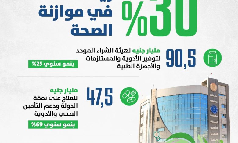 ٩٠,٥ مليار جنيه لهيئة الشراء الموحد بنمو سنوي ٢٥٪ لدعم توفير الأدوية والمستلزمات الطبية لقطاع الصحة
