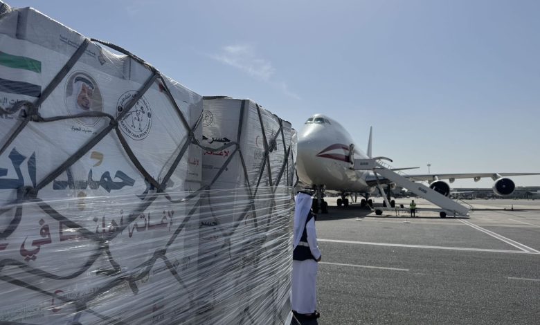 بدعم من وكالة الإمارات للمساعدات الدولية.. مطار العريش يستقبل طائرة مساعدات إماراتية تحمل 100 طن من المواد الغذائية ضمن جسر حميد الجوي