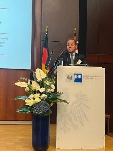أضاف كجوك، فى حوار مفتوح مع مجتمع الأعمال الألماني، الذى نظمته الغرفة الألمانية العربية للصناعة والتجارة فى فرانكفورت وحضره ممثلو الشركات الألمانية العاملة فى مصر وكذلك الشركات المهتمة بالاستثمار فى مصر، والمهندس أحمد السويدى رئيس الغرفة، ونيفين منصور مستشار الوزير لعلاقات المؤسسات الاقتصادية: «ندعوكم لاستثمار الفرص الاقتصادية المتنوعة والحقيقية بمصر وتحقيق عوائد قوية بمزيد من الإنتاج والتصنيع والتصدير»، لافتًا إلى أننا نستهدف شراكة استراتيجية بين مصر وألمانيا للاستفادة من القدرات الاقتصادية الكامنة؛ بما يجعل مصر مركزًا للإنتاج والتصدير للشركات الألمانية.